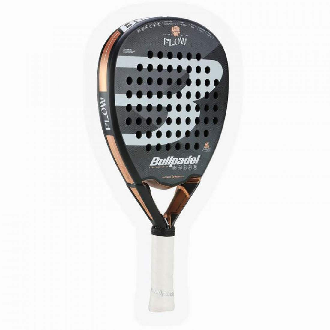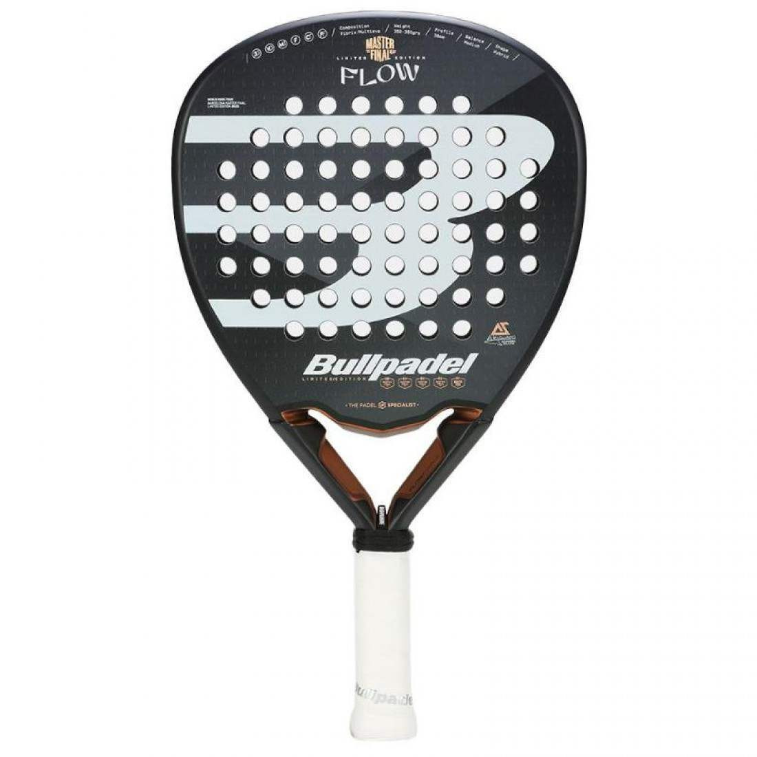 DESCRIPCION La pala Flow es una pala ligera de forma de diamante, de un gran potencial. Esta concebida para jugadoras profesionales o avanzadas. Incorpora el corazon FlowForce. Su nucleo externo se compone de fibra hibrida Fibrix y un acabado rugoso 3D grain para imprimir mayor efecto a los golpes. Su nucleo interno esta compuesto por la nueva MultiEva que consta de 2 densidades de eva diferentes y su marco CarbonTube de fibra de carbono 100%. Ademas, dispone de sistema Vibradrive para absorcion de vibraciones. Pala oficial del Master Final WPT 23. La pala Flow es una pala ligera de forma de diamante, de un gran potencial. La pala de nuestra jugadora Alejandra Salazar esta concebida para jugadoras profesionales o avanzadas.