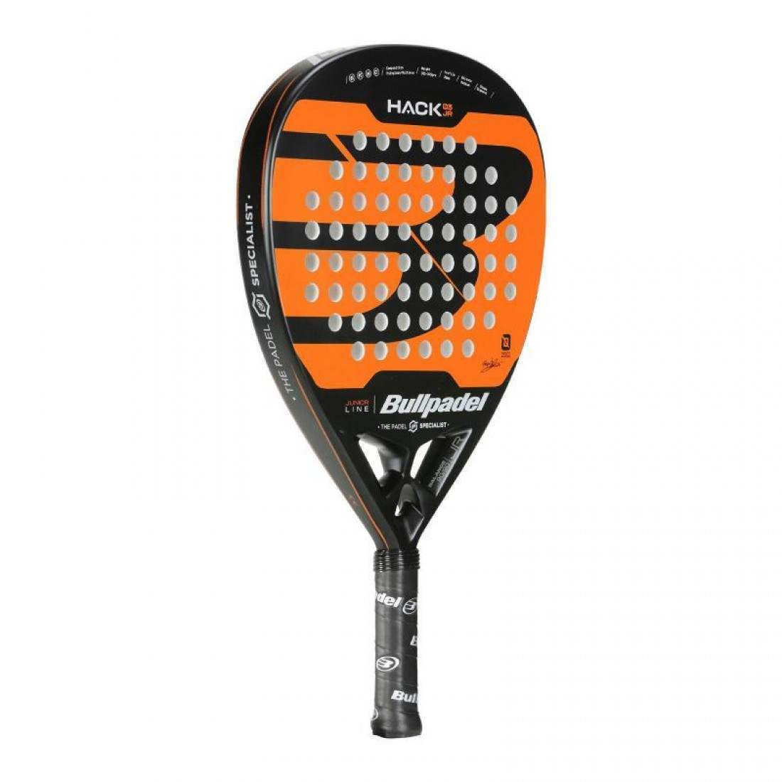 Ref: 471622 EAN: 8445402483938La nueva Pala HACK JR 24 es la pala oficial de Paquito Navarro adaptada a jugadores junior.Cuenta con una superficie similar a una pala de adulto favoreciendo el aprendizaje del jugador.Está concebida para jugadores junior con un alto nivel de juego.Peso aprox: 335-345 grs.Perfil: 35 mm.Balance: MedioForma: DiamanteNúcleo exterior: PolyglassNúcleo interior: EvalasticProtector: NoJugador: Junior avanzadoPotencia/Control: 95/95Tecnologías:Polyglass / Evalastic / Hack / Carbon Tube
