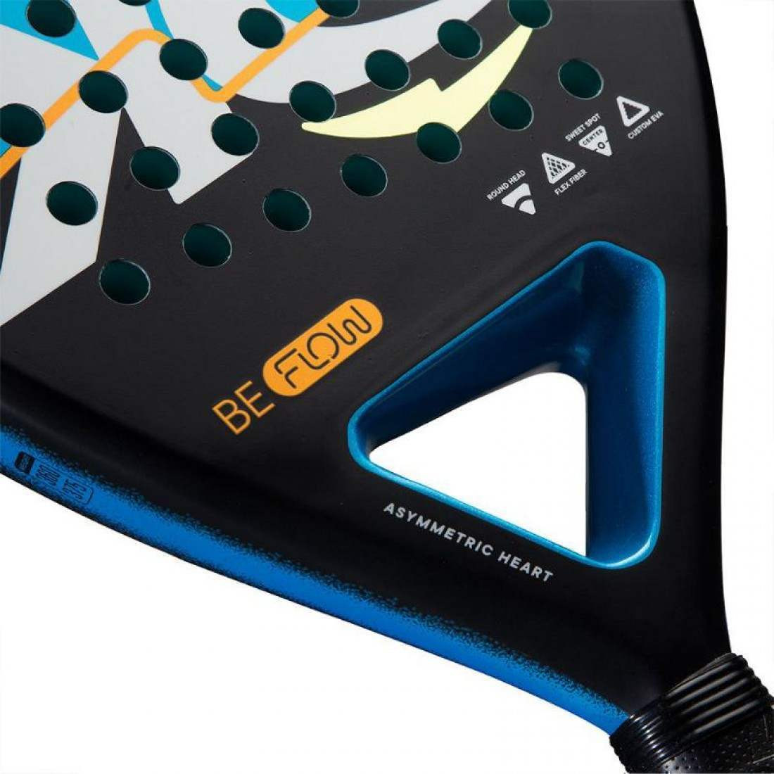 Ref: LORK5FA0 EAN: 8436548249205La BE Flow, es una pala para jugadores en fase de crecimiento en la pista de pádel.Está diseñada para ser fácil de manejar y poner al alcance del jugador todas las facilidades para mejorar en su juego, sobre todo en golpeos de control.Tiene una forma circular haciendo que los golpeos de control en volea y fondo de pista sean más efectivos y consistentes.El corazón asimétrico de la BE Flow optimiza la distribución del peso en la pala, mejorando así la maniobrabilidad y la estabilidad en cada golpe.La Be Flow cuenta con superficie de fibra de carbono mixto que contribuye a ser una pala con un tacto de confort alto y que te ayudará a estar cómodo en la pista.Además, está fabricada con nuestra goma EVA con que tiene la capacidad de recuperar su posición inicial en un tiempo menor tras un impacto de la bola.Gracias a su densidad, esta goma se adapta a todo jugador, y se presenta en un exclusivo color verde siguiendo la línea corporativa de la marca.NIVEL: AmaterPUNTO DULCE: CentroFORMA: RedondaBALANCE: CentroPESO: 360-375grLONGITUD: 455mmPERFIL: 38mmASYMMETRIC HEARTNuestro corazón es el emblema de nuestras palas y se caracteriza por su diseño asimétrico a la vez que mantiene un balance perfecto.Nuestra seña de identidad más reconocible. Su forma única y original da lugar a unos escalones laterales que forman los nervios del corazón, ofreciendo una rigidez estructural que aporta estabilidad y que es clave para conseguir un balance óptimo.Entre otras de sus funcionalidades, Asymmetric Heart permite aumentar la velocidad de la bola en el swing de golpeo imprimiendo más potencia en el golpe.FIBER REINFORCEMENTSGLASS FIBER. Goma Custom EVA: Nuestras palas de Generation ONE cuentan con una goma única que tiene una excelente capacidad de memoria, lo que ayuda al jugador a obtener una mayor potencia en el momento del golpeo.La memoria es la capacidad que tiene la goma de recuperar su posición inicial en un tiempo menor tras un impacto de la bola.Gracias a su densidad, esta goma se adapta a todo jugador, y se presenta en un exclusivo color verde siguiendo la línea corporativa de la marca.