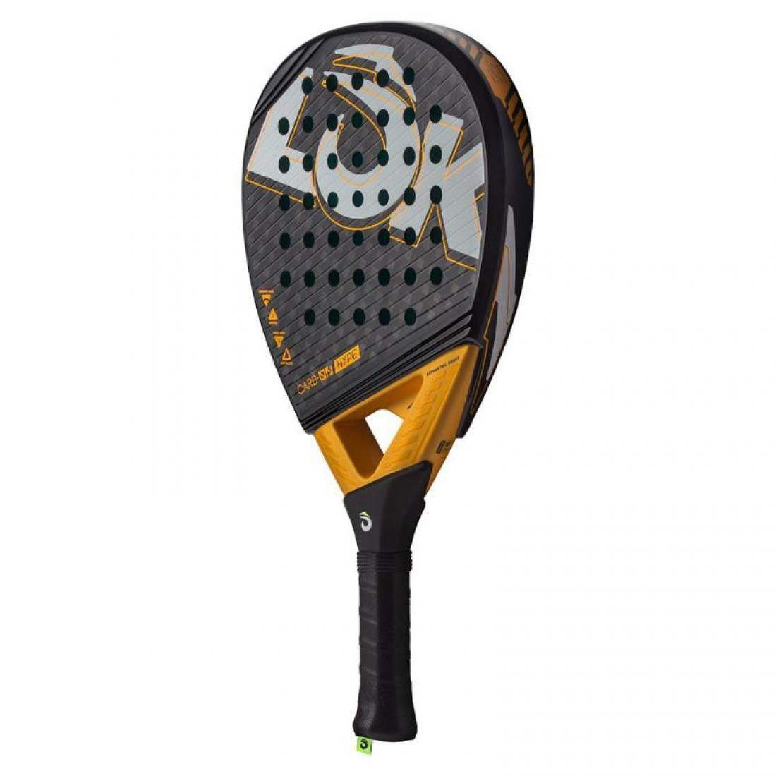 Ref: LORK1HA1 EAN: 8436548249151La pala Carbon-On Hype es una opción de vanguardia para jugadores de pádel de nivel avanzado que buscan un equilibrio perfecto entre potencia y control, respaldado por tecnologías innovadoras y un diseño meticuloso.Una de las características destacadas de la Carbon-On Hype es su corazón asimétrico, una tecnología que optimiza la distribución del peso en la pala para mejorar la maniobrabilidad y la estabilidad en cada golpe.La pala cuenta con una superficie de Carbono C6 dispuestos en tres planos diferentes haciendo una pala de potencia.Cuenta también con el sistema Gradual Face, que consiste en un diseño de superficie de golpeo con forma escalonada en los exteriores para reducir la vibración en el impacto de bola.Además, la pala cuenta con las exclusivas 3D Spin Lines, unas líneas estratégicamente ubicadas en la superficie de golpeo que aumentan la rotación de la pelota al impactarla.Dispone también de Dynamic Holes System, una disposición progresiva de agujeros con tamaños diferentes que dan potencia al golpe.Además cuenta con refuerzos de carbono y una muñequera ajustable denominada Confort Wristband.Su forma en diamante hace que su balance y punto dulce estén en la parte superior haciendo que sea una pala enfocada en golpes de ataque.NIVEL: AvanzadoPUNTO DULCE: SuperiorFORMA: DiamanteBALANCE: SuperiorPESO: 360-375grLONGITUD: 455mmPERFIL: 38mmASYMMETRIC HEARTNuestro corazón es el emblema de nuestras palas y se caracteriza por su diseño asimétrico a la vez que mantiene un balance perfecto.Nuestra seña de identidad más reconocible. Su forma única y original da lugar a unos escalones laterales que forman los nervios del corazón, ofreciendo una rigidez estructural que aporta estabilidad y que es clave para conseguir un balance óptimo.Entre otras de sus funcionalidades, Asymmetric Heart permite aumentar la velocidad de la bola en el swing de golpeo imprimiendo más potencia en el golpe.3D SPIN LINESEl sistema 3D Spin Lines incrementa la rotación de la bola cuando impacta con la pala, aumentando así el efecto y mejorando la sensación de control.Consiste en un sistema de líneas diagonales paralelas a la dirección del ángulo del corazón y separadas a una distancia óptima de 7mm que permite mejorar la sensación de control.GRADUAL FACENuestras palas cuentan con un sistema de capas escalonadas generadas en las partes superior e inferior de las caras.Gradual Face son unos escalones y relieves que generan ángulos que ayudaran a reducir la vibración a medida que en el momento del golpeo esta va avanzando por toda la superficie.Esta vibración se produce desde el punto del impacto desplazándose tanto a la parte superior como a la inferior de la cara, lugares donde la tecnología está presente.DYNAMIC HOLES SYSTEMUna disposición progresiva con dos tamaños de agujeros diferentes -10 y 11mm- en la parte central de la cara, para ayudar a dar potencia al golpe.CARBON REINFORCEMENTRefuerzos de carbono en diferentes puntos críticos de la pala a modo de apoyo estructural para contribuir a la durabilidad.COMFORT WRISTBANDLas palas cuentan con una muñequera ajustable que acompaña a la cuerda para aportar comodidad en el agarre, sean cual sean las necesidades y gustos del jugador.Cuenta con una capa reforzada y una parte interior suavizada para conseguir el máximo comfort, y un diseño con el claim de la marca.