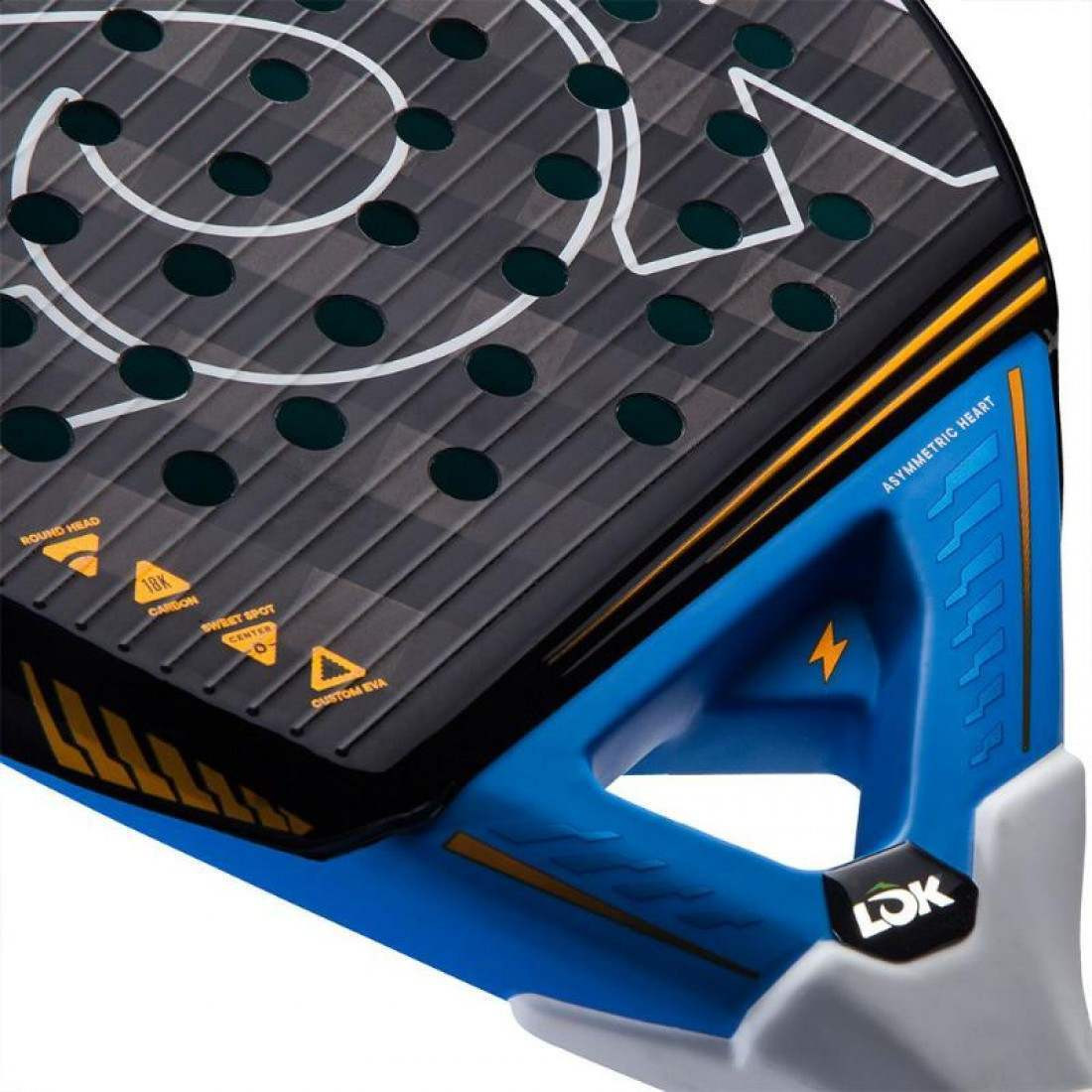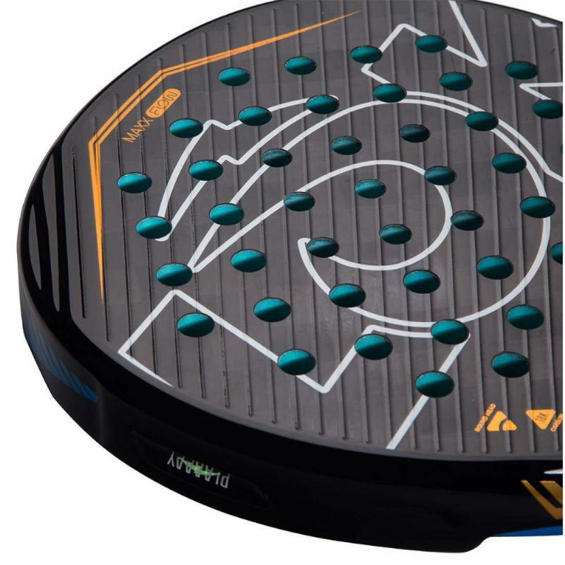 Ref: LORK1FA0 EAN: 8436548249144La Maxx Flow es una pala innovadora diseñada para brindar un rendimiento excepcional en la pista.Una de las características principales de la Maxx Flow es el corazón asimétrico, una estructura de carbono, que proporciona una excelente rigidez y estabilidad.Esto permite una transferencia óptima de energía en cada golpe, maximizando la potencia sin sacrificar el control.Además, la pala cuenta con una capa de carbono C18, que ofrece una mayor durabilidad y una respuesta más consistente en cada golpe.Además, el sistema 3D Spin Lines incrementa la rotación de la bola, aumentando así el efecto y mejorando la sensación de control.La Maxx Flow está diseñada con un balance medio, lo que proporciona un equilibrio perfecto entre potencia y maniobrabilidad.Cuenta con Carbon Reinforcements – refuerzos de carbono- que apoyan a la durabilidad de la estructura de la pala y Dynamic Holes System con una disposición progresiva de agujeros con tamaños diferentes que dan potencia al golpe.Dispone del sistema Confort Wristband que es una muñequera ajustableNIVEL: PROPUNTO DULCE: CentroFORMA: RedondaBALANCE: CentroPESO: 360-375grLONGITUD: 455mmPERFIL: 38mmASYMMETRIC HEARTNuestro corazón es el emblema de nuestras palas y se caracteriza por su diseño asimétrico a la vez que mantiene un balance perfecto.Nuestra seña de identidad más reconocible.Su forma única y original da lugar a unos escalones laterales que forman los nervios del corazón, ofreciendo una rigidez estructural que aporta estabilidad y que es clave para conseguir un balance óptimo.Entre otras de sus funcionalidades, Asymmetric Heart permite aumentar la velocidad de la bola en el swing de golpeo imprimiendo más potencia en el golpe.3D SPIN LINESEl sistema 3D Spin Lines incrementa la rotación de la bola cuando impacta con la pala, aumentando así el efecto y mejorando la sensación de control.Consiste en un sistema de líneas diagonales paralelas a la dirección del ángulo del corazón y separadas a una distancia óptima de 7mm que permite mejorar la sensación de control.GRADUAL FACENuestras palas cuentan con un sistema de capas escalonadas generadas en las partes superior e inferior de las caras.Gradual Face son unos escalones y relieves que generan ángulos que ayudaran a reducir la vibración a medida que en el momento del golpeo esta va avanzando por toda la superficie.Esta vibración se produce desde el punto del impacto desplazándose tanto a la parte superior como a la inferior de la cara, lugares donde la tecnología está presente.DYNAMIC HOLES SYSTEMUna disposición progresiva con dos tamaños de agujeros diferentes -10 y 11mm- en la parte central de la cara, para ayudar a dar potencia al golpe.CARBON REINFORCEMENTRefuerzos de carbono en diferentes puntos críticos de la pala a modo de apoyo estructural para contribuir a la durabilidad.VIBRATION GROOVERail insertado en el marco de la pala que ayuda a disipar las vibraciones producto del impacto de la bola.El rail incorpora una terminación en PU para maximizar su función.COMFORT WRISTBANDLas palas cuentan con una muñequera ajustable que acompaña a la cuerda para aportar comodidad en el agarre, sean cual sean las necesidades y gustos del jugador.Cuenta con una capa reforzada y una parte interior suavizada para conseguir el máximo comfort, y un diseño con el claim de la marca.