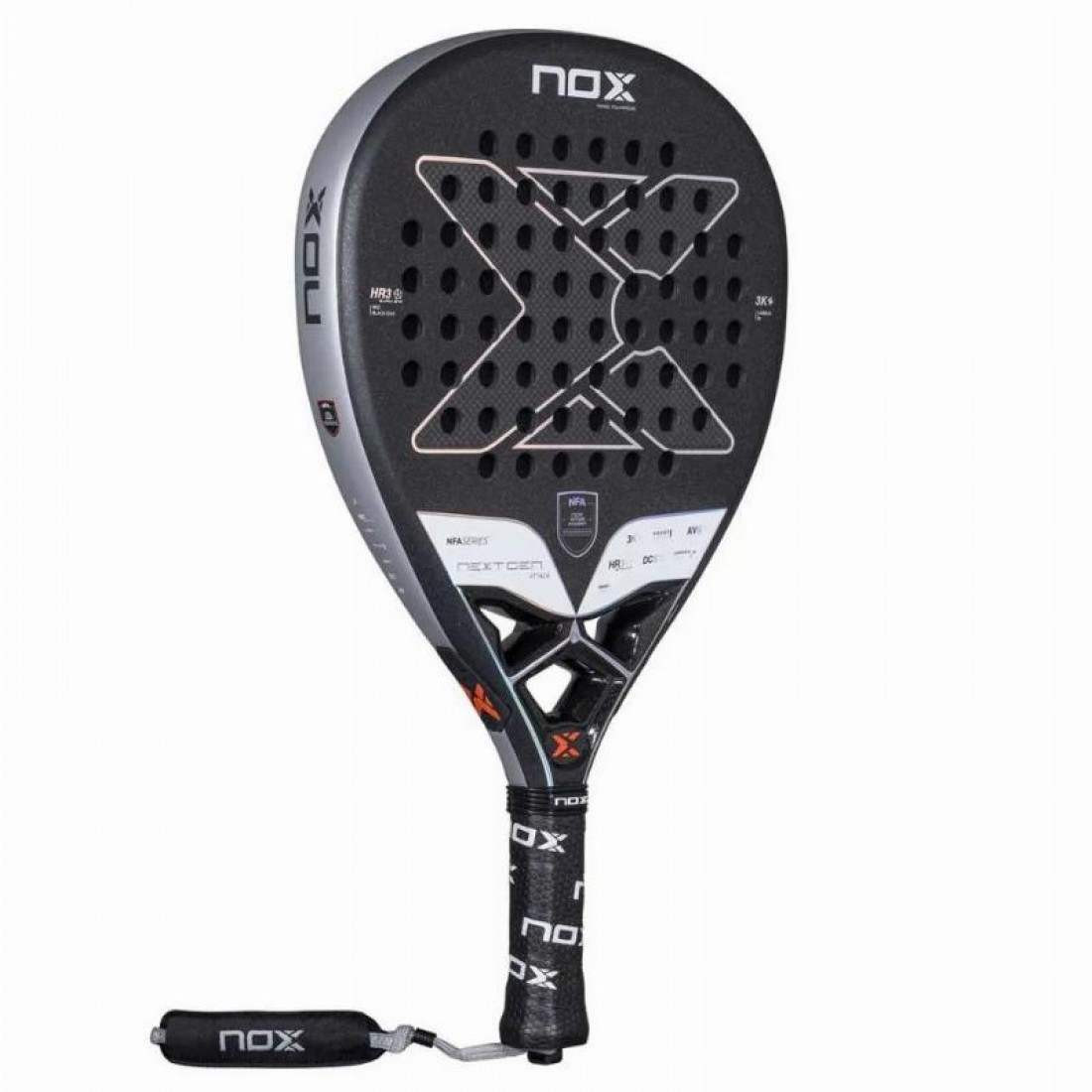 Pala Nox Nextgen Pro Attack 3K 2025REF: PNFANGATT EAN: 8435778900597La Nox NextGen PRO Attack 3K 2025 es la pala diseñada para las futuras estrellas del pádel, aquellas que buscan dominar la cancha con potencia, precisión y un rendimiento excepcional. Creada especialmente para los jugadores de la Nox Future Academy (NFA), este modelo está pensado para quienes quieren elevar su nivel de juego.Una pala de ataque para jugadores agresivosSi tu estilo de juego es ofensivo y disfrutas del dominio en la red, los remates potentes y la máxima aceleración en tus golpes, la NextGen PRO Attack 3K es tu mejor aliada. Su forma de diamante y su balance alto te proporcionan una potencia impresionante, ideal para definir puntos con autoridad y hacer que cada golpe sea letal.Materiales de alta calidad para un rendimiento superiorFabricada con tecnología de vanguardia y los mejores materiales, esta pala ofrece una combinación perfecta entre potencia y control, asegurando una sensación inigualable en cada golpe:Marco 100% de carbono: Mayor resistencia, durabilidad y estabilidad estructural para soportar el juego más exigente.Carbono 3K en la cara: Aporta rigidez y solidez en los impactos, garantizando golpes potentes y precisos.Núcleo HR3 Black Eva: Goma de alta recuperación que proporciona una excelente salida de bola y mayor control en los golpes de ataque.Superficie rugosa de arena: Ideal para imprimir efecto en cada golpe y mejorar la precisión en los golpes liftados y cortados.Diseñada para los campeones del mañanaLa NextGen PRO Attack 3K 2025 está pensada para los jugadores que buscan una pala de alto rendimiento a un precio accesible, permitiendo que más talentos emergentes tengan acceso a una herramienta de primer nivel en su camino hacia el pádel profesional.Tecnologías avanzadas para un juego más efectivoFIBER CARBON 3K: Mayor durabilidad y solidez en cada impacto.HR3 COLOR EVA: Núcleo con goma de alta recuperación que optimiza la potencia y el control.DCS – DYNAMIC COMPOSITE STRUCTURE: Tecnología que refuerza la estructura de la pala, reduciendo el riesgo de roturas y prolongando su vida útil.SMARTSTRAP: Sistema de cordón reemplazable que mejora la higiene y personalización de la pala.ANTI VIBRATION SYSTEM: Reducción de vibraciones para minimizar lesiones en el codo y la muñeca.CARBON FRAME: Marco de carbono que aporta mayor rigidez y resistencia, garantizando una mejor respuesta en cada golpe.Conclusión: Eleva tu juego al siguiente nivelLa Nox NextGen PRO Attack 3K 2025 es la pala definitiva para los jugadores que quieren destacar con un juego ofensivo, dominar la red y conseguir la máxima potencia en cada golpe. Con materiales de alta calidad, tecnologías innovadoras y un diseño espectacular, esta pala es la elección ideal para quienes buscan dar el salto al pádel competitivo. ¡Conviértete en la próxima estrella del pádel con Nox!