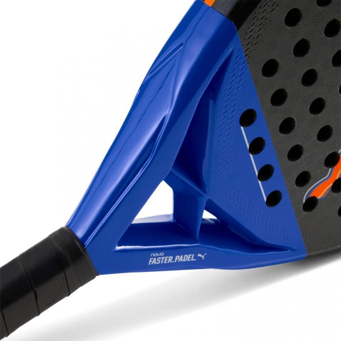 DESCRIPCIONPala Puma Nova Elite Hybrid Negro Azul TurquesaLa Pala Puma Nova Elite Hybrid es la elección perfecta para jugadores que buscan una combinación de potencia, control y precisión en cada golpe. Con su diseño innovador y sus materiales de última generación, esta pala híbrida está pensada para ofrecer un rendimiento excepcional tanto en el ataque como en la defensa. Su estructura robusta, junto con un equilibrio perfecto, te permitirá dominar el juego en todas las situaciones.REF: 049046-01 :EAN: 4067984274120Características:- Estructura híbrida de carbono y fibra de vidrio: Proporciona un equilibrio ideal entre resistencia y flexibilidad, lo que se traduce en una potencia y control superiores.- Forma redonda y balance medio: Optimiza el área de impacto (sweet spot) para mejorar la precisión y reducir los errores no forzados, ideal para jugadores que buscan estabilidad.- Núcleo EVA de alta densidad: Ofrece un excelente control y absorción de impactos, mejorando la sensación de la pelota y reduciendo vibraciones.- Diseño atractivo en negro, azul y turquesa: Los tonos negro y azul predominan en su estructura, con detalles en turquesa que aportan un toque de dinamismo y estilo moderno.- Acabado mate con textura rugosa: Mejora el control sobre la pelota y proporciona un toque de calidad adicional a la estética de la pala.Conclusión:La Pala Puma Nova Elite Hybrid Negro Azul Turquesa es ideal para jugadores que buscan un rendimiento superior en cada partido, sin comprometer el confort ni la estética. Su equilibrio y tecnología avanzada la convierten en una opción confiable para quienes desean dominar el juego con confianza y estilo.