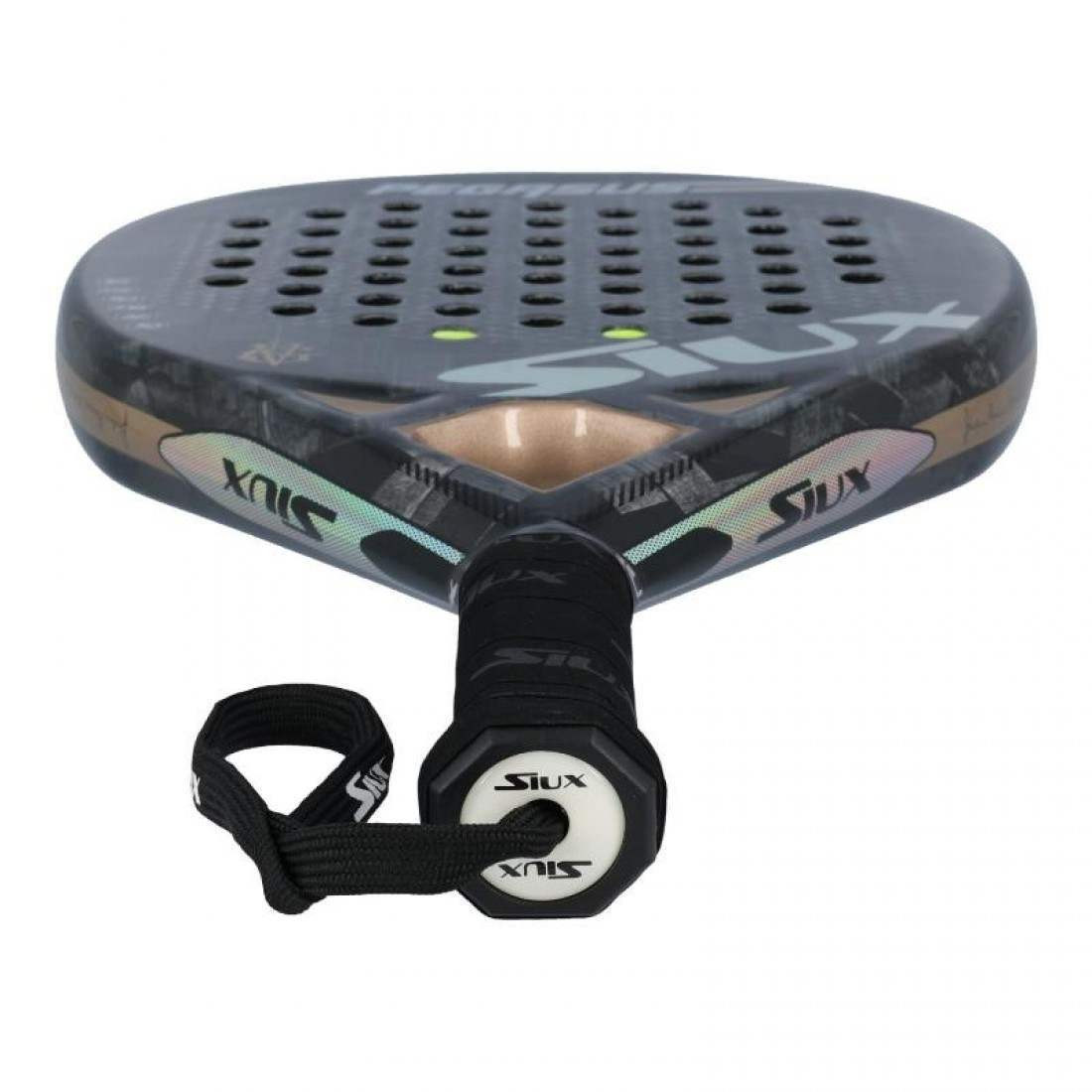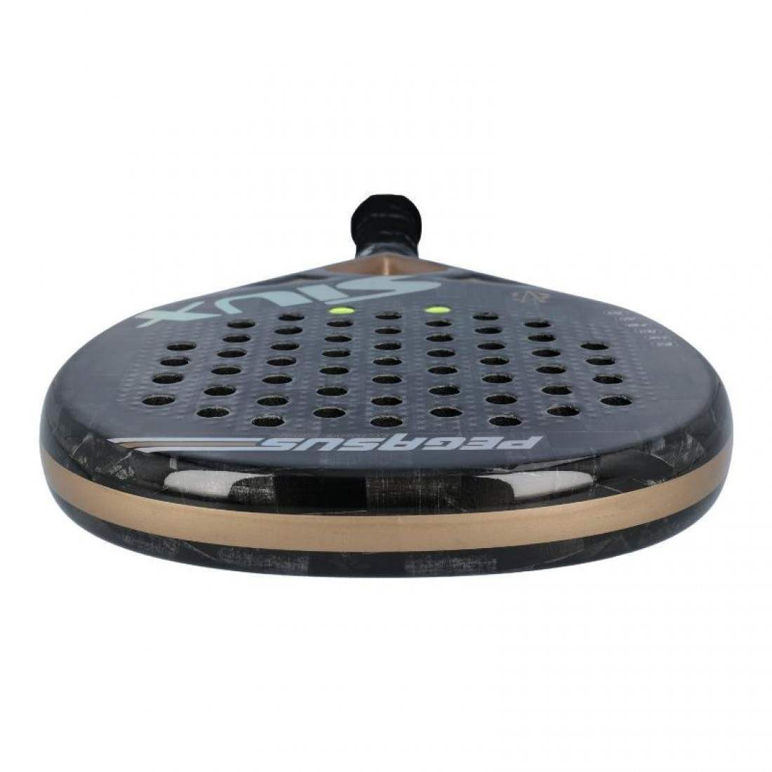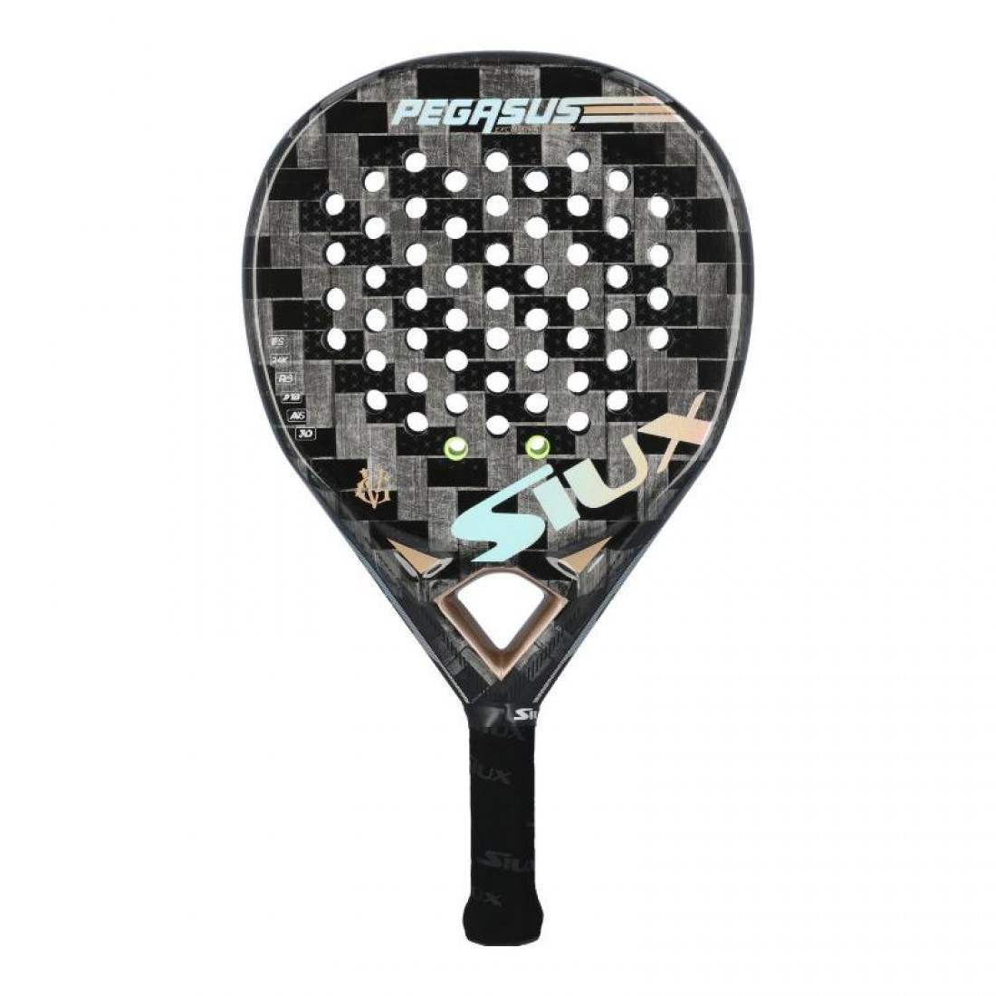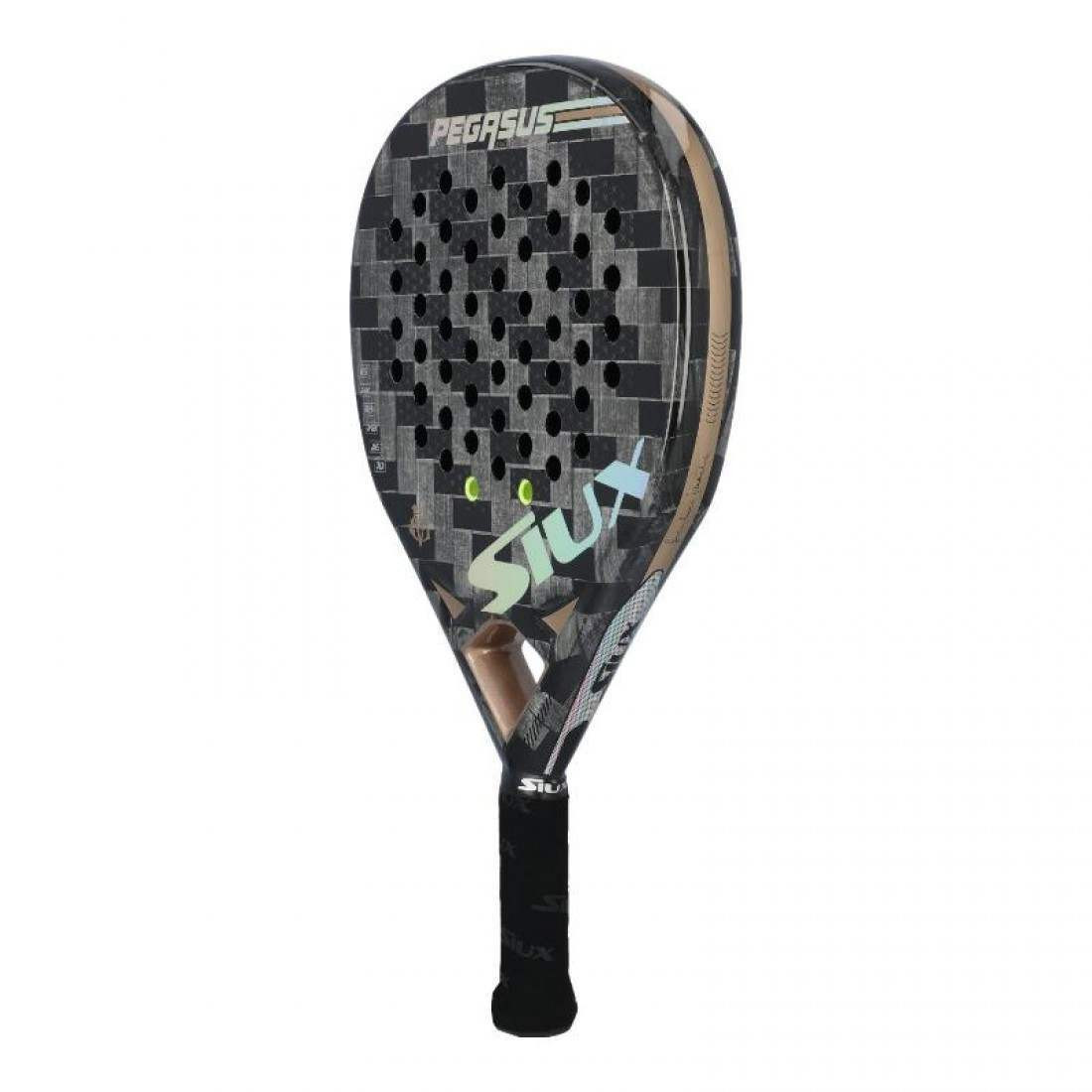 Pala Siux Pegasus GV EditionREF: A003950 EAN: 8435536789853Experimenta la potencia, control y precisión en cada golpe con la Pala Siux Pegasus GV Edition. Diseñada para jugadores exigentes que buscan lo mejor en cada partido, esta pala combina materiales de primera calidad y una ingeniería avanzada para brindar un rendimiento superior. Con un balance perfecto entre fuerza y maniobrabilidad, la Pegasus GV Edition es ideal para jugadores de nivel intermedio a avanzado que desean llevar su juego al siguiente nivel.Características Principales:Carbono 24K Silver en la Superficie: La tecnología de carbono 24K Silver en las caras de la pala ofrece una rigidez extra que permite una salida de bola impresionante y una respuesta rápida al contacto, proporcionando un golpe potente y estable en cada intercambio.Núcleo de EVA Soft: Este núcleo de goma EVA Soft proporciona una amortiguación mejorada, lo que facilita el control y mejora el confort en cada golpe. Ayuda a reducir las vibraciones, minimizando el riesgo de lesiones en la muñeca y el codo mientras aumenta el control de la bola.Marco de Carbono de Alta Resistencia: La estructura del marco está elaborada en carbono de alta calidad, lo que asegura una durabilidad superior y resistencia ante los impactos, manteniendo la pala ligera y manejable. Esta característica garantiza que puedas jugar con la máxima seguridad y control durante mucho tiempo.Balance Medio para una Versatilidad Óptima: Con un balance medio, la Pegasus GV Edition logra un equilibrio ideal entre control y potencia, permitiéndote moverte con libertad y adaptarte a diferentes tipos de golpes sin esfuerzo. Esto hace que sea una pala increíblemente versátil para los jugadores que buscan una buena combinación de precisión y fuerza.¿Para quién es ideal?La Pala Siux Pegasus GV Edition es perfecta para jugadores intermedios y avanzados que buscan una pala versátil y de alto rendimiento. Ideal para aquellos que desean un juego equilibrado con potencia y control, esta pala se adapta a múltiples estilos de juego, permitiendo a los jugadores explotar su capacidad ofensiva sin sacrificar precisión. Es especialmente recomendada para quienes buscan una pala duradera que brinde comodidad y soporte en cada golpe.Conclusión:La Siux Pegasus GV Edition es una pala de alta gama que combina tecnología avanzada y materiales de máxima calidad para brindar un rendimiento inigualable en la cancha. Su carbono 24K Silver, núcleo de EVA Soft y marco de carbono la convierten en una opción poderosa y duradera. Con su balance medio, esta pala ofrece un equilibrio perfecto para un juego versátil y cómodo, ideal para jugadores que desean dar lo mejor de sí en cada partido.