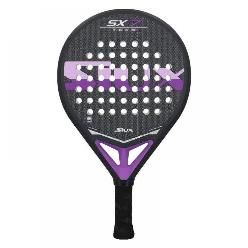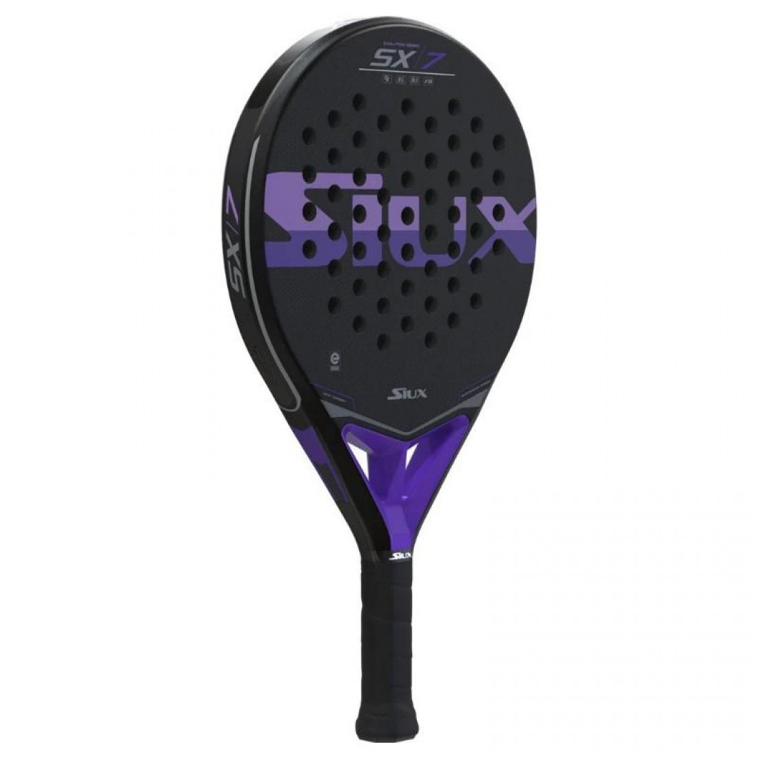 Pala Siux SX7EAN: 8435536752345Diseñada para ofrecer una experiencia de juego inigualable, la Siux SX7 es la aliada perfecta para quienes buscan dar sus primeros pasos en el mundo del pádel con seguridad, precisión y comodidad. Su construcción meticulosa y su diseño inteligente hacen de esta pala una herramienta equilibrada que combina control, estabilidad y una maniobrabilidad sobresaliente.Con una forma redonda y un equilibrio centrado, la SX7 garantiza un punto dulce amplio y un control excepcional, ideal para jugadores que priorizan la precisión sobre la potencia. Su núcleo de goma EVA media proporciona una respuesta consistente en cada golpe, absorbiendo las vibraciones para ofrecer una sensación firme pero cómoda al contacto con la bola.La incorporación de un sistema antitorsión y un puente reforzado dota a esta pala de una rigidez superior que elimina torsiones indeseadas, aumentando así la firmeza y la estabilidad en cada swing. Esto se traduce en una mayor confianza al devolver bolas rápidas o ajustadas. Además, su perfecto agarre asegura una sujeción ergonómica y segura, lo que favorece una técnica más limpia y un menor riesgo de lesiones.Gracias a su diseño pensado para facilitar el aprendizaje, la Siux SX7 se presenta como una opción ideal para jugadores principiantes o de nivel intermedio que desean progresar con una pala que les brinde apoyo en cada fase del juego.Conclusión:Con la Siux SX7, no solo tienes una pala: tienes una compañera de evolución. Su equilibrio perfecto entre control, firmeza y facilidad de manejo convierte cada partido en una oportunidad para mejorar tu técnica y disfrutar del juego desde el primer momento. Si buscas una pala accesible, resistente y diseñada con precisión, la SX7 es tu mejor elección. ¡Da el primer golpe con confianza y deja que la Siux SX7 te guíe hacia tu mejor versión en la pista!