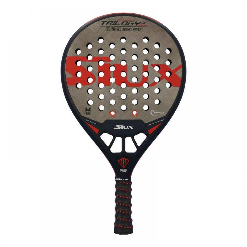Pala Siux Trilogy 3 ControlDescubre el máximo control, precisión y confort con la Siux Trilogy 3 Control, una pala diseñada para jugadores exigentes que buscan dominar cada punto con golpes precisos y una maniobrabilidad excepcional. Este modelo de alto rendimiento es ideal para jugadores de nivel avanzado o profesional que priorizan el control sin renunciar a una excelente salida de bola y sensación de golpeo.Características principales:Forma redonda: Proporciona un punto dulce amplio, facilitando el control y la precisión en cada golpe.Balance bajo: Perfecto para jugadores que buscan máxima manejabilidad y estabilidad en cada movimiento.Estructura reforzada: Asegura mayor resistencia y durabilidad, ideal para los partidos más exigentes.Tecnología de vanguardia para un rendimiento superiorCarbono 24K en las caras: Aporta una excelente respuesta en el golpeo, optimizando el control sin perder potencia cuando se necesita.Núcleo de goma EVA Soft High Recovery: Garantiza una rápida recuperación tras el impacto, ofreciendo un tacto cómodo, absorbiendo vibraciones y mejorando la sensación de juego.Marco tubular 100% carbono: Brinda mayor resistencia estructural, aumentando la durabilidad y estabilidad en cada golpe.Refuerzos estructurales: Minimiza la torsión y mejora la precisión en los golpes off-center.Sensación, confort y estabilidad en cada puntoLa Siux Trilogy 3 Control es perfecta para jugadores técnicos que buscan dominar la red y defender con precisión desde el fondo de la pista. Su equilibrio entre control y salida de bola permite una gran adaptabilidad tanto en golpes defensivos como ofensivos, manteniendo una excelente estabilidad en el juego.Gracias a su composición y tecnologías avanzadas, esta pala ayuda a reducir las vibraciones, minimizando el riesgo de lesiones como la epicondilitis, brindando un confort excepcional en cada partido.¿Para quién es ideal la Siux Trilogy 3 Control?Jugadores de nivel avanzado o profesional que buscan máxima precisión y control en su juego.Jugadores que desean una pala con excelente estabilidad y respuesta en cada golpe.Ideal para quienes necesitan una pala con gran punto dulce y buena absorción de vibraciones.Conclusión:La Siux Trilogy 3 Control es la compañera perfecta para jugadores que priorizan la precisión, el control y el confort en su juego. Gracias a su construcción en carbono 24K, su balance bajo y su núcleo de EVA Soft High Recovery, esta pala ofrece un rendimiento espectacular en todas las situaciones de partido, permitiéndote desplegar un juego técnico y controlado sin sacrificar potencia cuando la necesites.Si buscas una pala que te ayude a elevar tu nivel de juego con un control inigualable y una sensación de golpeo espectacular, la Siux Trilogy 3 Control es la elección perfecta para dominar la pista con cada golpe.