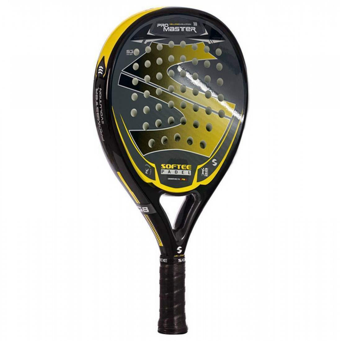 DESCRIPCIONLas plas Pro Master Evolution destacan sobre todo por su diseno estetico ya que son palas de gran personalidad y que destacan en pista.Son palas de nivel intermedio orientada a jugadores que buscan potencia y control a partes iguales.Esta fabricada en fibra de vidrio con nucleo EVA Soft S3 con balance medio y punto dulce muy amplio.PESO: 355-375 GRS.PERFIL: 38 MM.FORMA: HIBRIDA (DIAMANTE-LAGRIMA).NUCLEO: GOMA EVA SOFT S3.CARAS: 100% FIBRA DE VIDRIO.NIVEL DE JUEGO: INICIACION-MEDIO.BALANCE: MEDIO.ACABADO: BRILLO-LISO