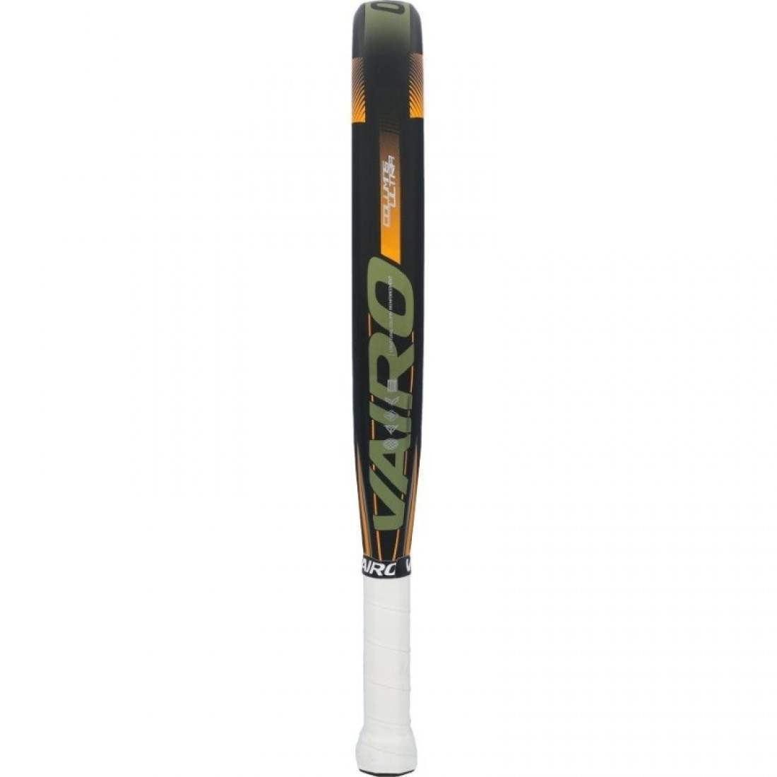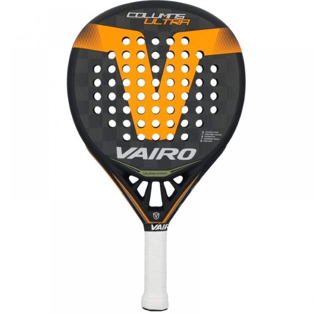 DESCRIPCIONPala Vairo Columns UltraDescubrí la potencia y el control en un solo golpe con la nueva Vairo Columns Ultra. Diseñada para jugadores de nivel avanzado o profesional, esta pala de pádel ofrece un juego polivalente ideal para quienes buscan versatilidad en cada punto. Su formato híbrido, que fusiona las ventajas de una forma redonda y lágrima, logra el equilibrio perfecto entre control y potencia. Con un peso medio entre 360 y 370 gramos y un balance intermedio, esta pala garantiza manejabilidad sin sacrificar rendimiento.REF: 108098 :EAN: 8435536789686Características principales:- Núcleo de goma EVA: proporciona una excelente respuesta tanto en golpes agresivos como en jugadas más pausadas, con gran absorción de vibraciones y durabilidad.- Caras de fibra de carbono 24K Textreme: material de altísima calidad que aporta mayor rigidez, resistencia y una salida de bola superior.- Superficie con acabado mate: no solo mejora la estética, sino que aporta un toque elegante y profesional.- Marco tubular mixto: compuesto por 50% fibra de carbono y 50% fibra de vidrio, que brinda ligereza, resistencia y una óptima manejabilidad en el juego.- Tecnología Columns System: amplía el punto dulce para aumentar el control en cada golpe, incluso en situaciones exigentes.Elevá tu juego con una pala que responde a tus exigencias más altas. La Vairo Columns Ultra combina tecnología avanzada, materiales premium y un diseño moderno en negro y naranja para destacar dentro y fuera de la pista. Ideal para quienes quieren dominar cada punto con precisión y estilo.