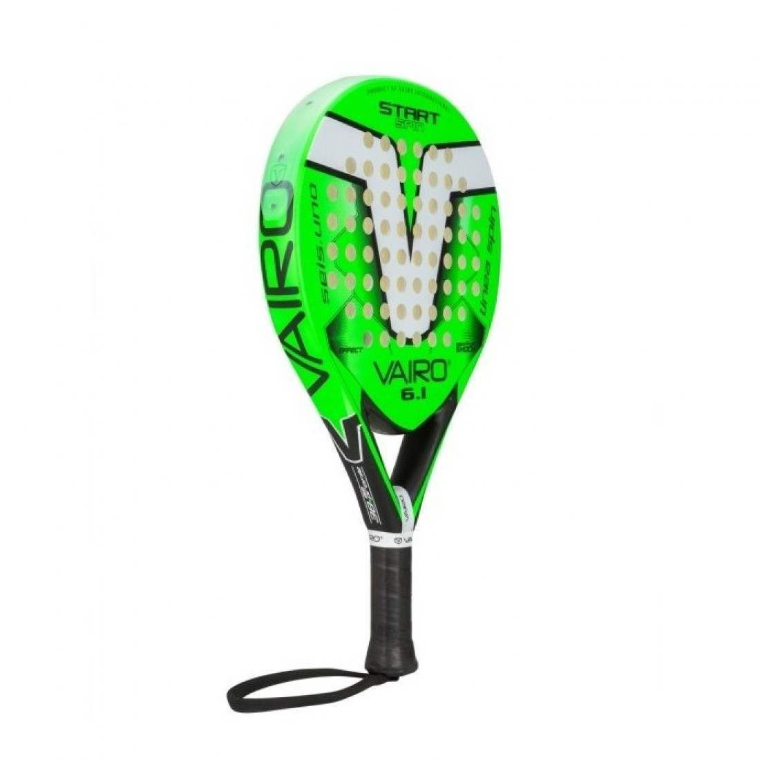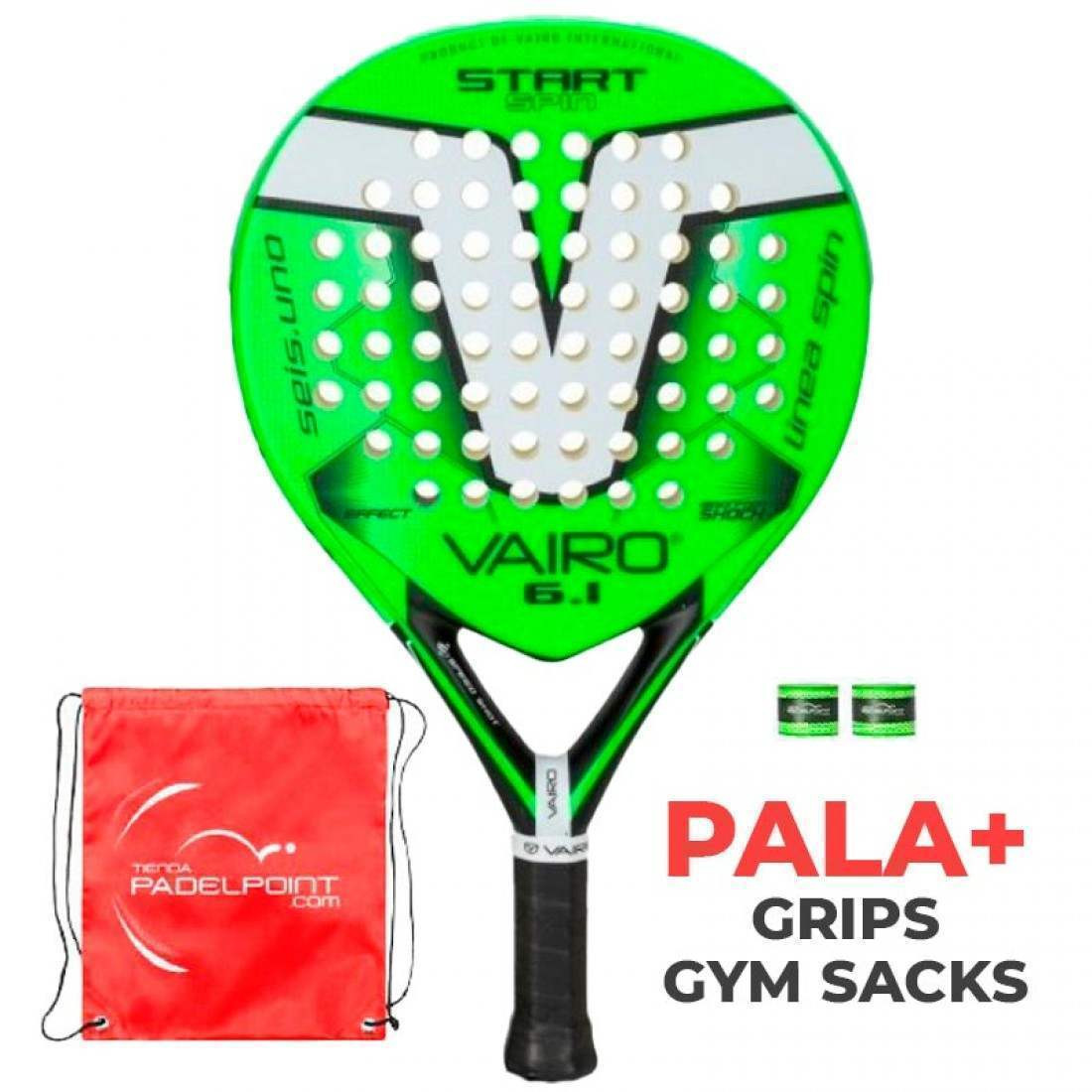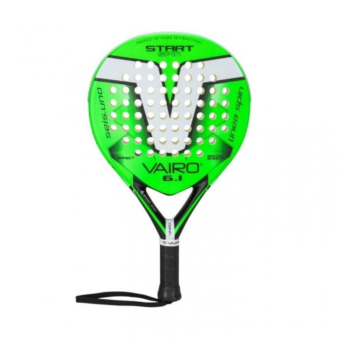 Descripcion: La Pala Vairo START SPIN 6.1 es perfecta para jugadores que buscan una pala de control, ahora con superficio rugosa. Sus prestaciones son similares a su hermana, la Pala Vairo START 6.1, excepto en que cuenta con una superficie rugosa en el plano de la pala para que puedas transmitir tus efectos con mayor efectividad en la pista de juego (Spin Technology). TECNOLOGIAS: Carbon Composite: Al tener un mayor numero de fibras de carbono en una misma direccion, provoca que el tejido sea mucho mas resistente, otorgando a la pala zonas con mayor resistencia de acuerdo a las tensiones que debera soportar. Antishock cover protection: Protector de fibras de nylon de la mas alta calidad, sometido a un exclusivo sistema de fabricacion: Injection Molding, este sistema hace que sea fuerte, resiste altas temperaturas, golpes y rozaduras, pero a su vez es flexible lo que permite tras el impacto volver a su estado original. EVA Confort: Todas nuestras palas incorporan el nucleo EVA Confort (ethil vinil acetato) High Memory. Se caracteriza por su gran elasticidad e indice de rebote manteniendo practicamente inalterables su rendimiento y elasticidad inicial del nucleo con el uso y el paso del tiempo. Spin Technology: Superficie rugosa que le da un plus de control a la pala.