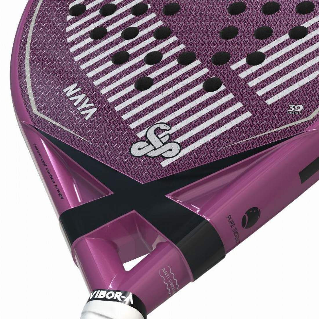 DESCRIPCIÓNLa Naya Xtreme Fiber es una pala fucsia de la línea Xtreme que mantiene el diseño del puente de las palas X Aniversario. Cuenta con un cuerpo en forma híbrida y un color de lo más vistoso para ser el jugador más chic de la pista. Una pala que ofrece gran estabilidad en el contacto con la bola gracias a su composición de fibra de vidrio y su núcleo de goma EVA laminada soft.Ficha técnicaAcabado Brillo 3DBalance MedioCara Fibra de vidrioComposición/material Fibra de vidrioEmpaquetado BolsaForma LágrimaMarco MixtoNivel de habilidad IntermedioNúcleo EVAPerfil 38mmTipo de juego Polivalente