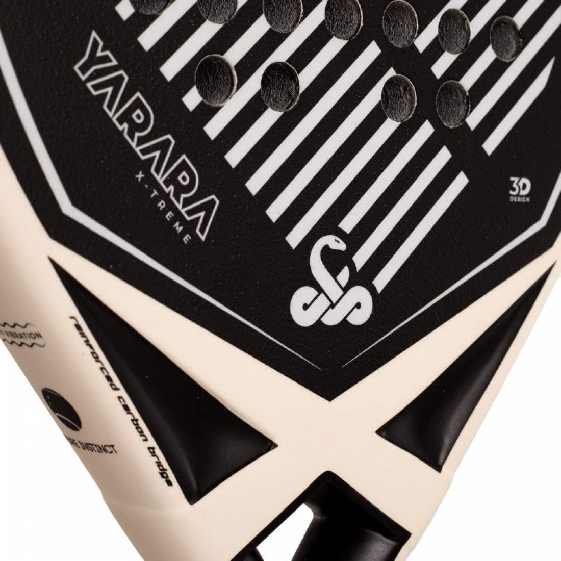 Pala Vibora Yarara Xtreme Fiber Negro 2025REF: A003780 EAN: 8445090132361La Vibora Yarara Xtreme Fiber Negro 2025 es una pala de pádel de alta gama diseñada para jugadores avanzados y profesionales que buscan un excelente equilibrio entre potencia y control.Esta pala destaca por su estructura de fibra de vidrio y su marco mixto, combinados con un núcleo de goma de evolución multidensidad, proporcionando una experiencia de juego versátil y de alto rendimiento en la pista.Características Principales:1. Material de la superficie: La superficie de la Yarara Xtreme Fiber Negro 2025 está fabricada en fibra de vidrio, lo que le proporciona una gran flexibilidad y un toque más suave, ideal para un excelente control sin sacrificar la potencia. Este material permite una salida de bola rápida y ayuda a mejorar el confort en cada golpe.2. Marco Mixto: El marco está compuesto por una combinación de carbono y fibra de vidrio, lo que aporta una gran durabilidad y resistencia, además de una mayor estabilidad en cada golpe. Este marco mixto proporciona una estructura sólida que refuerza la potencia en los golpes de ataque sin comprometer el control.3. Núcleo EVO Pro Multidensidad: El núcleo está compuesto de goma de EVO Pro Multidensidad, que combina diferentes densidades para adaptarse a la potencia y control que requiere cada tipo de golpe. Esta tecnología permite una mayor absorción de vibraciones, ofreciendo un golpeo suave en golpes controlados y una respuesta potente en golpes agresivos.Tecnologías Destacadas:EVO Pro Multidensidad Core: Núcleo de goma de evolución multidensidad que se adapta al golpe, ofreciendo un tacto más suave en golpes suaves y mayor potencia en golpes fuertes. Este sistema mejora la versatilidad de la pala, proporcionando un rendimiento óptimo en diferentes situaciones de juego.Anti-Vibration Technology: Sistema que reduce las vibraciones al momento del golpeo, mejorando el confort y reduciendo el riesgo de lesiones, especialmente en el codo y la muñeca.Extreme Surface Grip: Superficie texturizada que mejora el agarre de la bola, permitiendo una mejor aplicación de efectos en cada golpe y aumentando el control y la precisión en golpes liftados y cortados.Reinforced Frame Technology: Tecnología de refuerzo en el marco mixto de carbono y fibra de vidrio que proporciona una mayor durabilidad y resistencia estructural, mejorando la estabilidad en cada golpe y asegurando una larga vida útil de la pala.La Vibora Yarara Xtreme Fiber Negro 2025 es ideal para jugadores que buscan una pala versátil con un excelente equilibrio entre control y potencia, con un toque suave y cómodo. Su núcleo EVO Pro Multidensidad y marco mixto la convierten en una pala de alto rendimiento, perfecta para jugadores que desean dominar la pista con precisión y potencia en cada punto.