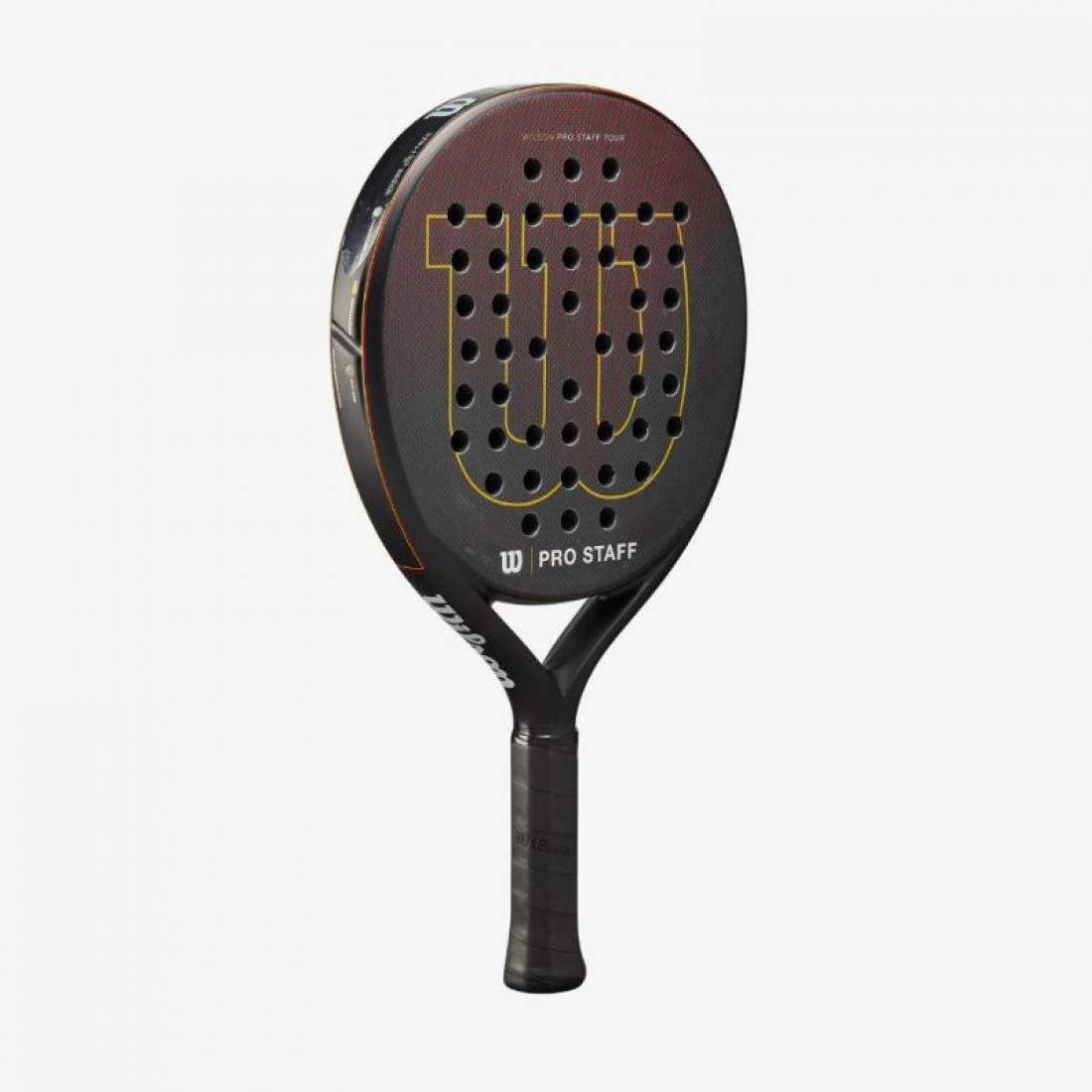 DESCRIPCIONDestacado por una espuma EVA firme en su nucleo para una sensacion nitida, el Pro Staff Tour v2 proporciona una precision superior en los niveles mas altos del deporte.Los jugadores competitivos apreciaran la geometria actualizada, el mango extendido y el patron de orificios optimizado, todo orientado a un mayor control y ubicacion de los golpes.El peso adicional a ambos lados de la cabeza de la raqueta de padel agrega estabilidad y mejora el punto dulce, mientras que una capa de fibra de carbono tejida estrategicamente produce una potencia superior para obtener resultados superiores.