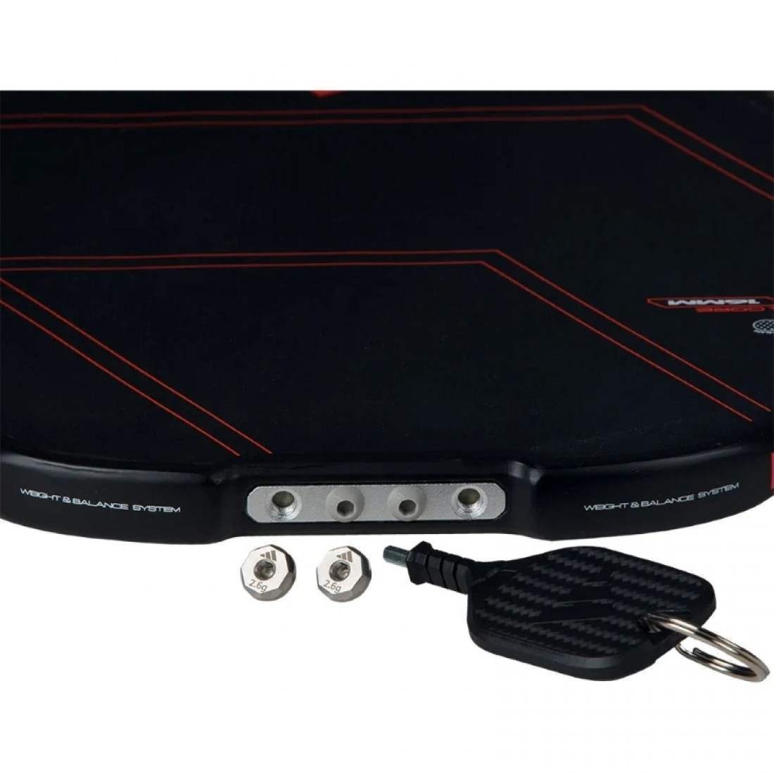 Con un diseño elegante en negro y rojo, esta pala no solo destaca por su estética, sino por las tecnologías de vanguardia que incorpora.