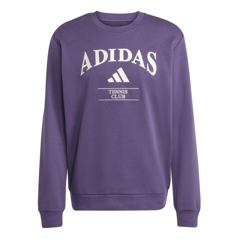 Entra a la cancha con estilo tradicional. Esta sudadera de cuello redondo de adidas combina vibraciones retro con la comodidad moderna. El suave tejido de mezcla de algodón y los detalles acanalados te mantienen cómodo mientras practicas tu deporte favorito. Los gráficos llamativos en la parte delantera rinden homenaje a un look de tenis clásico de décadas pasadas.