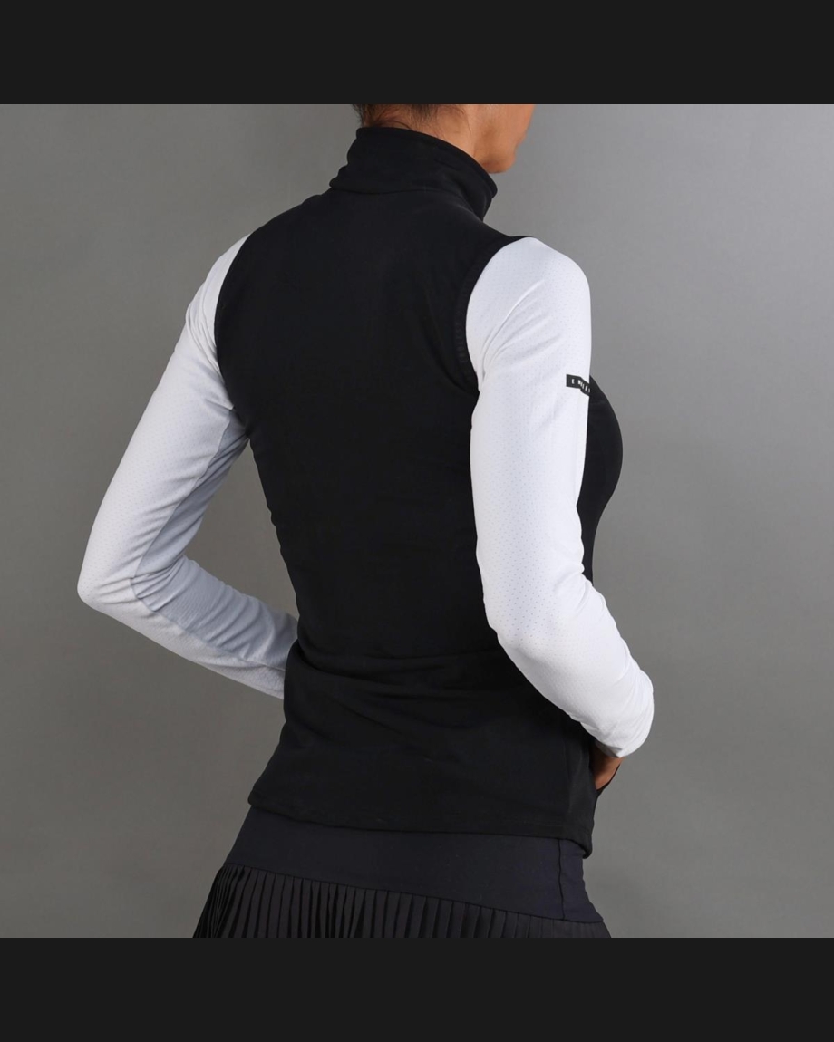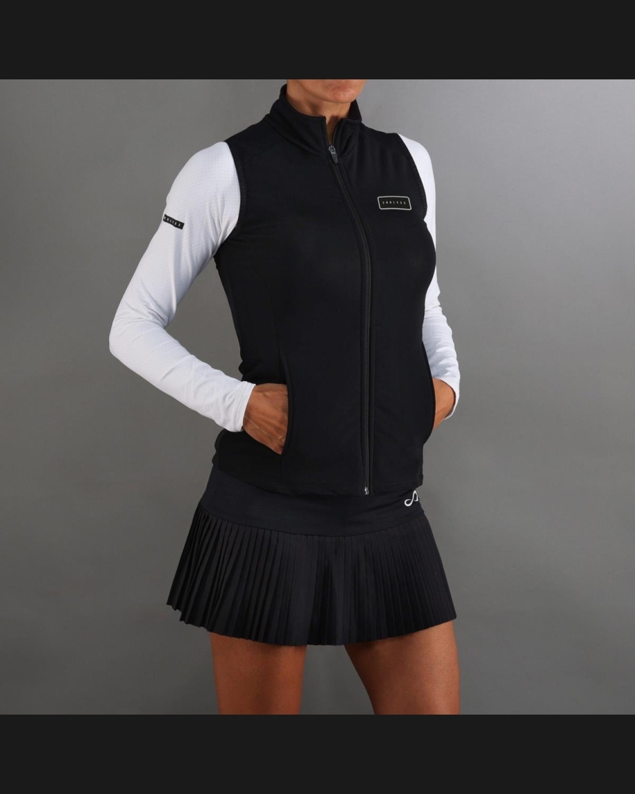 Su diseño sin mangas te permite una amplia libertad de movimiento en brazos y hombros, favoreciendo el rendimiento en deportes en tus entrenos de pádel y tenis. El corte entallado se adapta a tu cuerpo sin limitar la movilidad, y el cuello alto te protege eficazmente contra el viento.