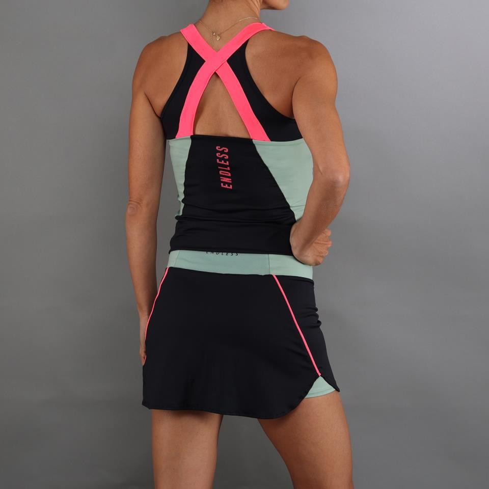 El conjunto Endless® Grace está fabricado con un tejido extra-elástico de alta calidad, que se adapta a todos tus movimientos en la pista. Gracias a su tecnología multifilamentos, absorbe el sudor y lo expulsa rápidamente para ayudarte a estar seca y cómoda durante el juego. Además, te protege de las radiaciones solares con un factor de protección UPF 50 en las áreas cubiertas por el tejido.