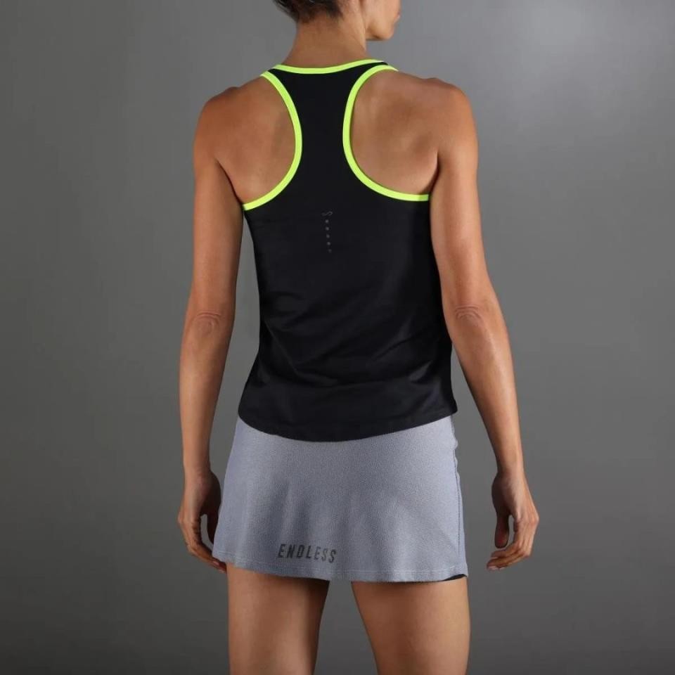 El conjunto Endless® Minimal II está elaborado con un tejido extra-elástico de alta calidad con certificación oficial Lycra® que se adapta a todos tus movimientos en la pista. Gracias a su tecnología multifilamentos absorbe el sudor y lo expulsa rápidamente para ayudarte a estar seca y cómoda durante el ejercicio. Además, te protege de las radiaciones solares con un factor de protección UPF 50 en las áreas cubiertas por el tejido.